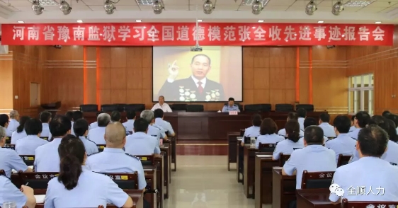 9月18日上午,全国人大代表、全国道德模范、“农民工司令”张全收应邀参加河南省豫南监狱举行的“学习全国道德模范张全收先进事迹报告会”。