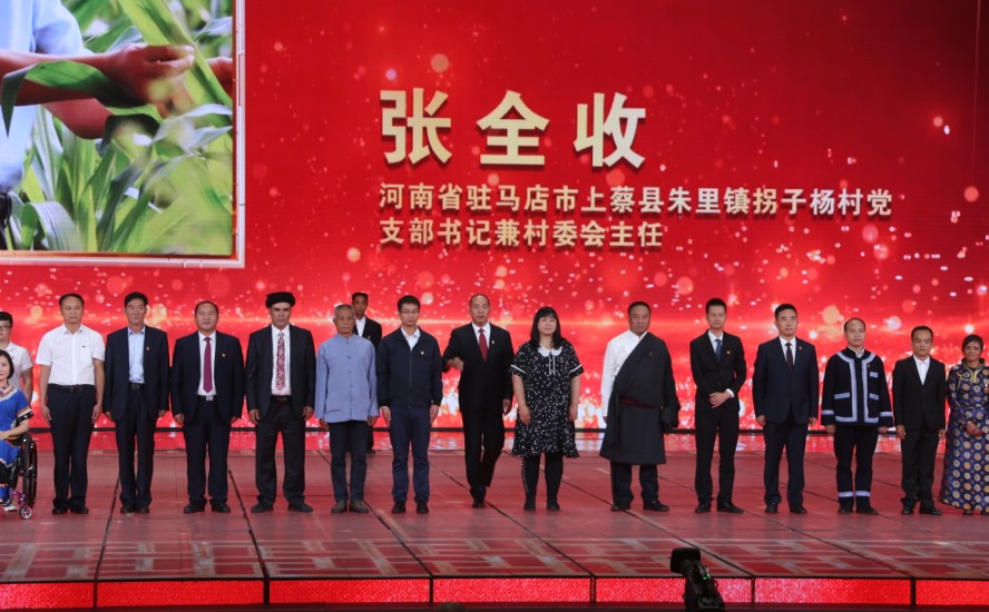驻马店市上蔡县朱里镇拐子杨村支部书记、村主任张全收参加2019年脱贫攻坚将颁奖晚会。