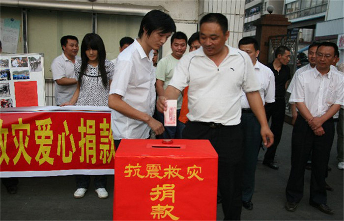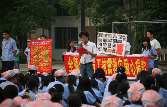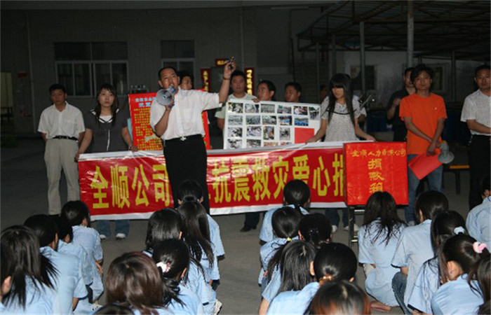 张董事长连夜去各个分厂作动员抗震募捐演讲