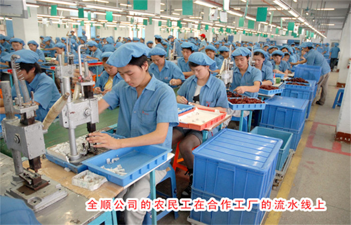 全顺的员工在工厂流水线上